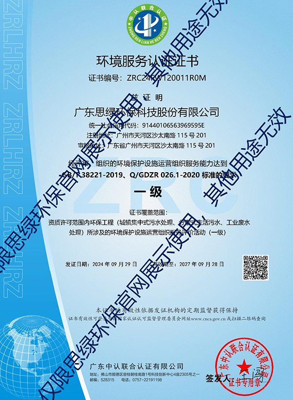 環(huán)境服務認證證書